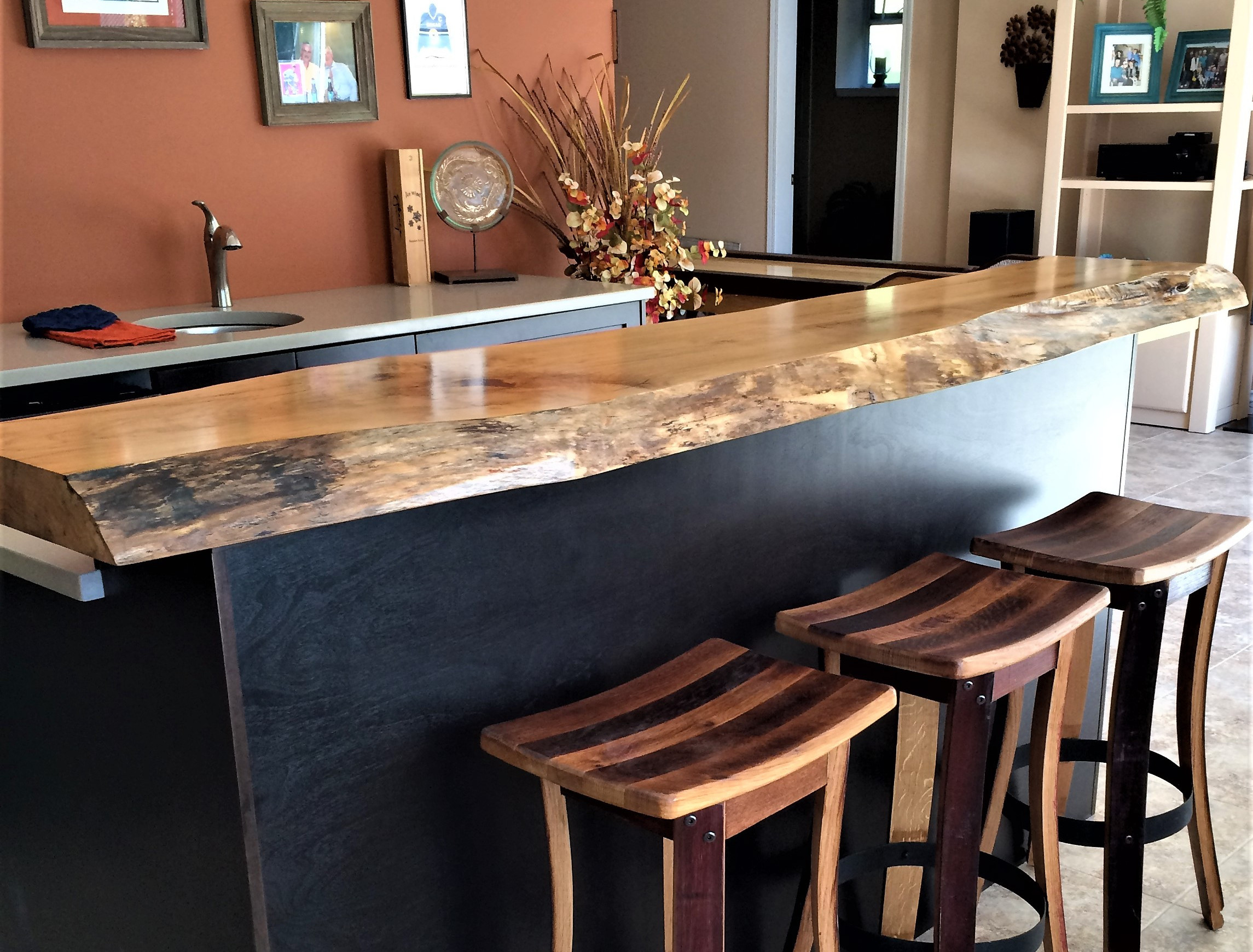 Each order is uniquely designed and handcrafted to match our clients’ style, feel, design — rustic, modern, or a mix of both. With decades of experience and a passion for natural wood, our portfolio showcases the endless possibilities of live edge slabs and custom finishes.